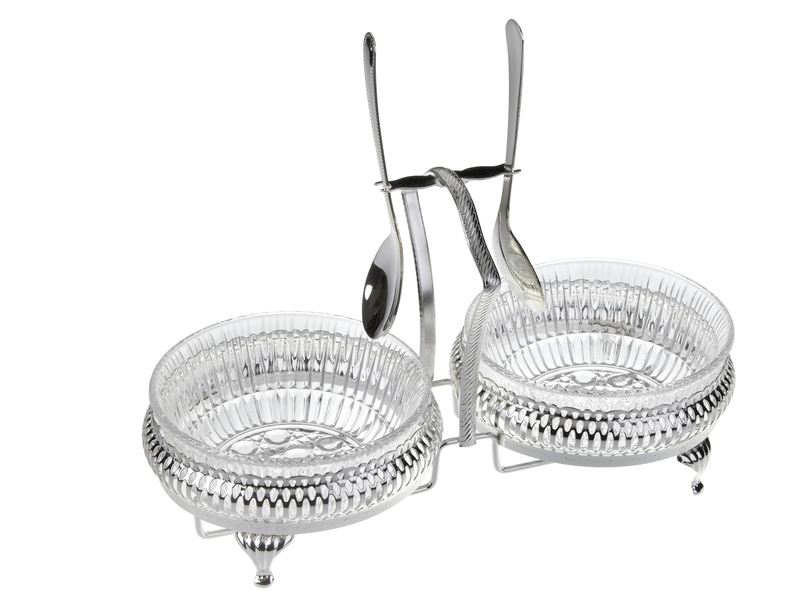 Queen Anne Double Jam Set/Spoon Silver Plate 5 3/4"h x 4 3/4"w x 10 1/8"l English Silver Plate (Tarnish Resistant). SKU #: 0/4333.