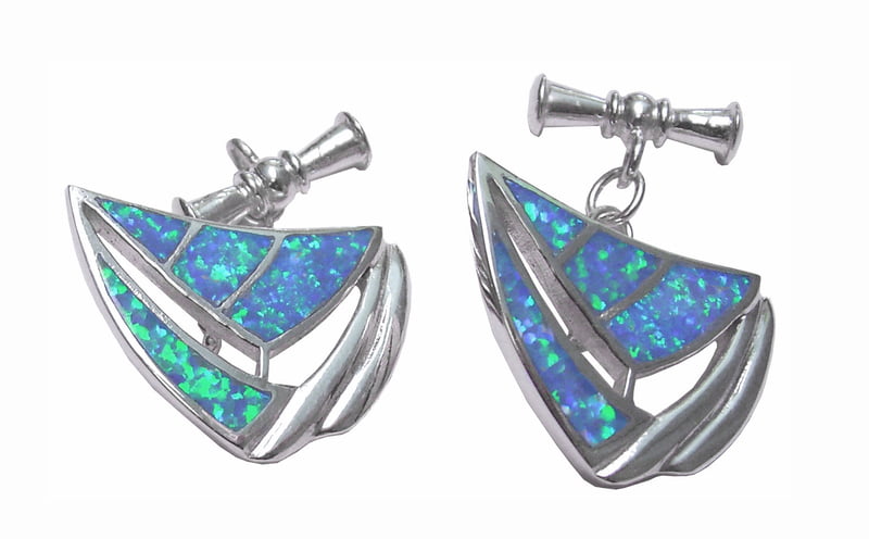 SILVER CUFFLINKS-Sail Boats Crushed Blue Sterling Silver. SKU #: CU509.