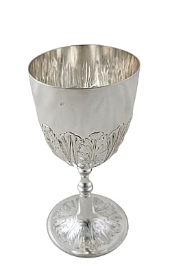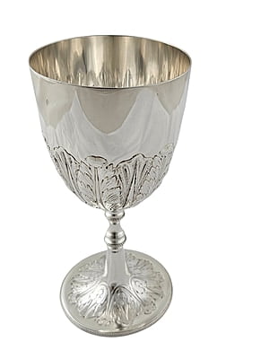 Embossed Goblet 7" With Engraved Foot English silver Plate c.1875