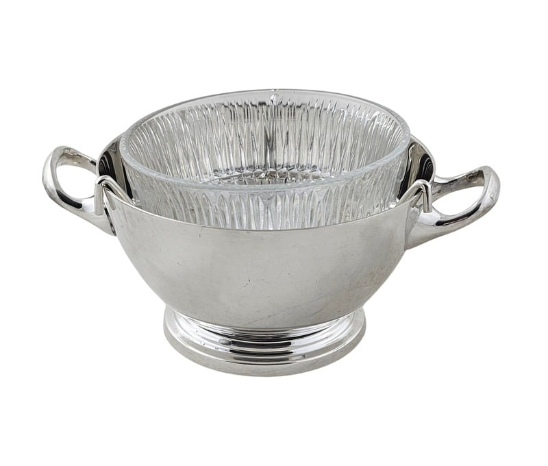 Caviar 2 Handle Hotel Plain 5" Bowl With Glass Insert Silver Plate