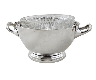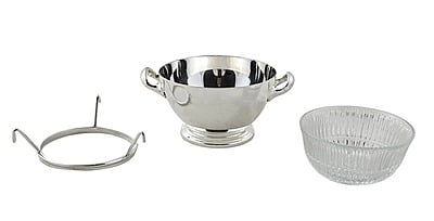 Caviar 2 Handle Hotel Plain 5" Bowl With Glass Insert Silver Plate (COPY). SKU #: C2007.