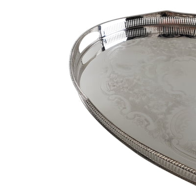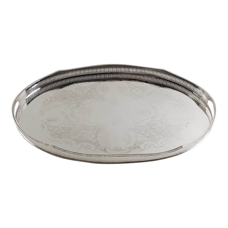 Gallery Tray 24" Engraved Inset Handles English Silver Plate c.1980. SKU #: A832.