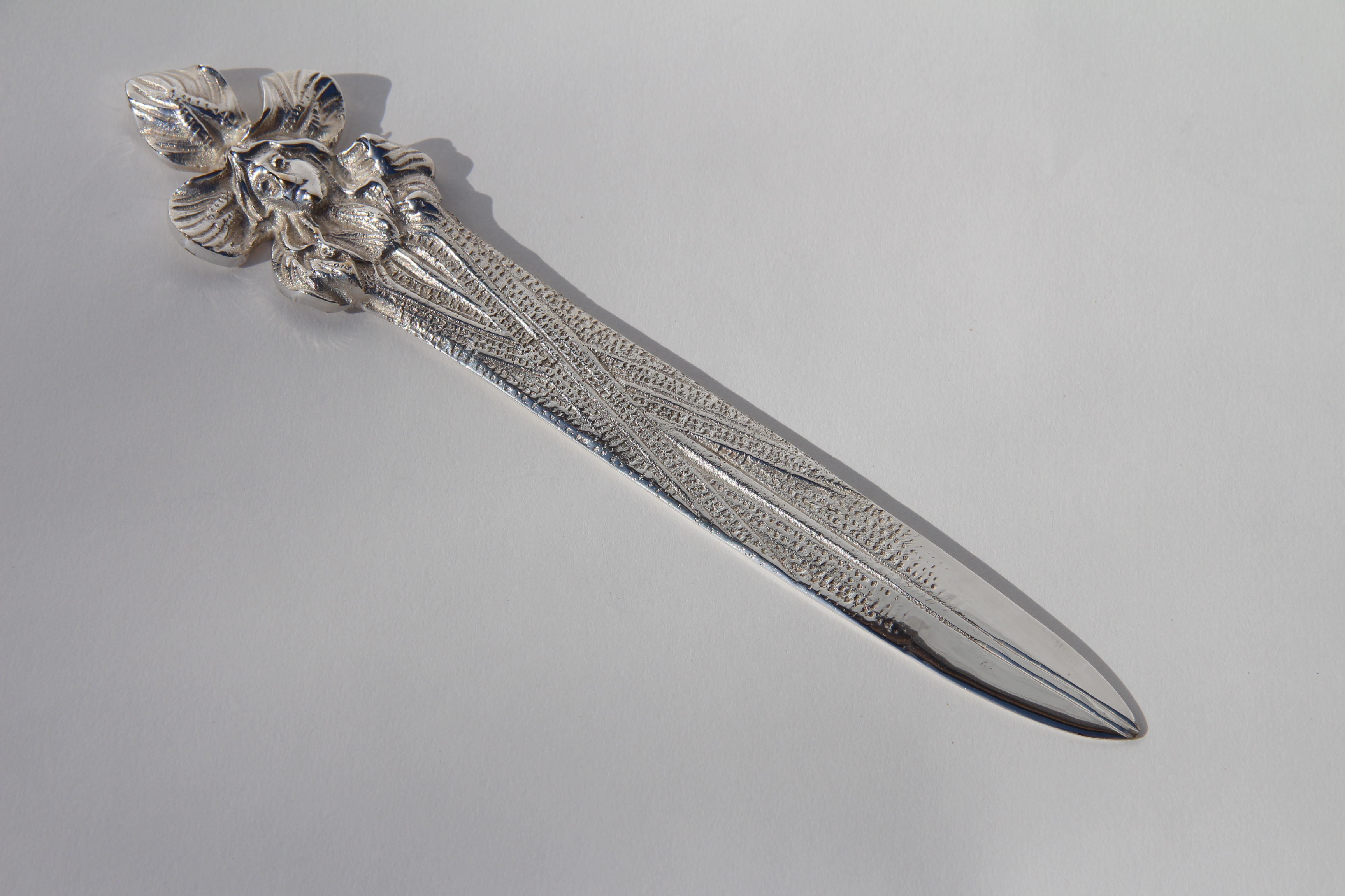 Letter Opener- Flower Face Silver Plate. SKU #: C434.