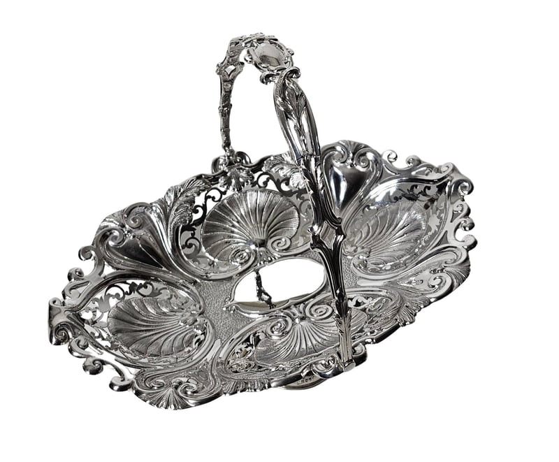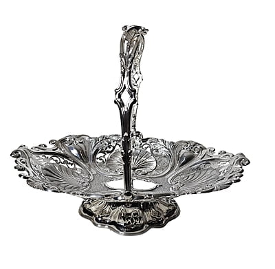 Basket, Oval Embossed & Pierced English Silver Plate c.1885.SKU:ANT3925