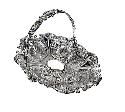 Basket, Oval Embossed & Pierced English Silver Plate c.1885.