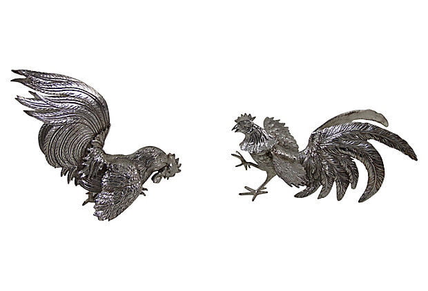 1950s Silver-Plated Roosters, Pair. SKU #: ANT1716.