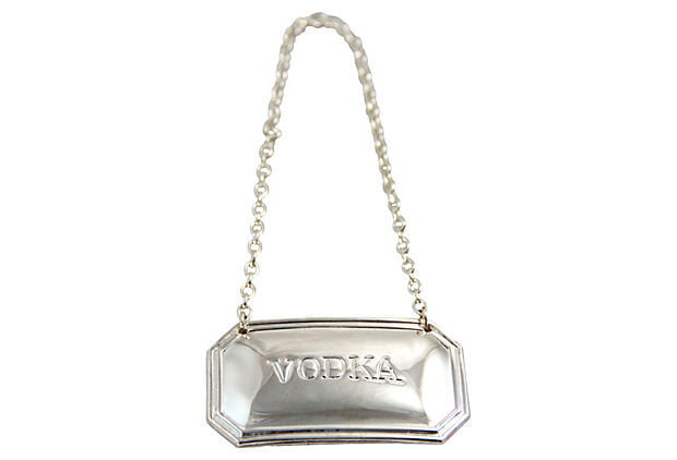 Decanter Label Cut Corner Silver Plate Vodka. SKU #: C1260VODKA.