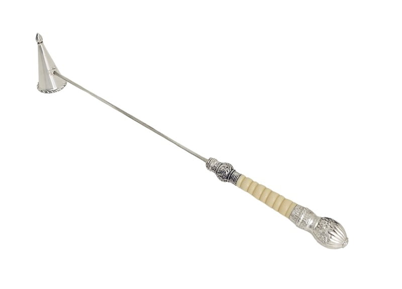 Candle Snuffer faux Ivory Handle Silver Plate. SKU #: C115.
