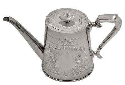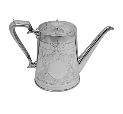 Oval Engraved Coffee Pot English Silver Plate c.1870