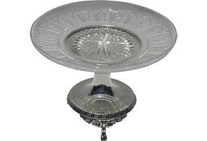 English Silver Plate/Etched Glass Compote c.1860. SKU #: A101.