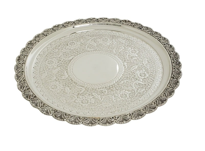 Salver 15" Heavily Embossed English Silver Plate c.1920