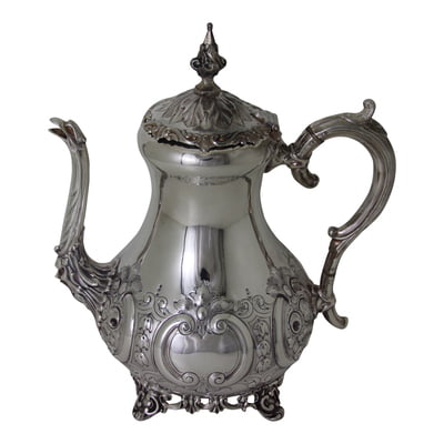 Embossed Coffee Pot English Silver Plate c.1850. SKU #: ANT1681.