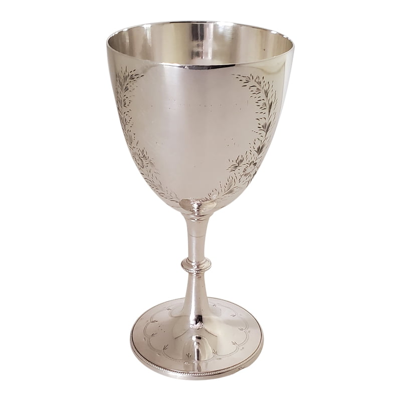 Goblet Engraved 6.25"h English Silver Plate c.1880