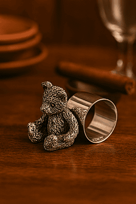 Napkin Ring Bear Figure Design Silver Plate. SKU #: C1241.