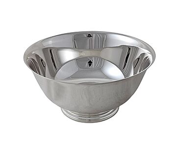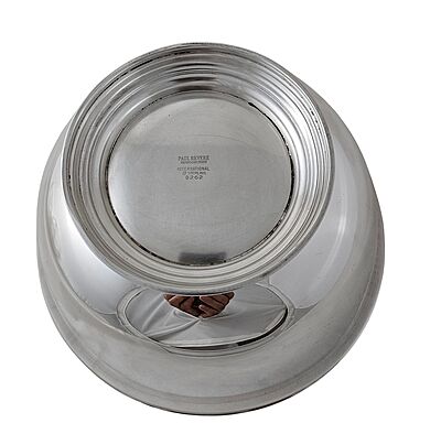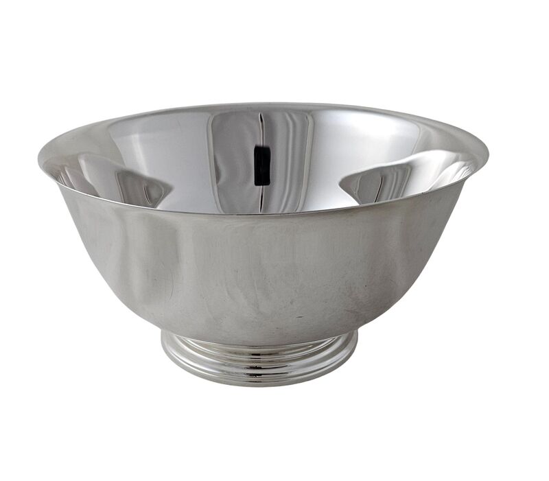 Today we are happy to offer for sale a wonderful vintage over-sized International Silver Paul Revere sterling bowl! The International Silver Company (also known as the ISC) was formed in Meriden, Connecticut in 1898 as a corporation banding together many existing silver companies in the immediate area and beyond. The company existed until 1983. This vintage sterling silver bowl is a reproduction of the iconic Paul Revere "Sons of Liberty" bowl which honored ninety-two members of the Massachusetts House of Representatives who refused to rescind a letter sent throughout the colonies protesting the Townshend Acts (1767), which taxed tea, paper, glass, and other commodities imported from England. This act of civil disobedience by the "Glorious Ninety-Two" was a major step leading to the American Revolution. The bowl was commissioned by fifteen members of the Sons of Liberty, a secret, revolutionary organization to which Paul Revere belonged. Paul Revere (1734-1818) was an American silversmith, engraver, early industrialist, and Patriot in the American Revolution. He is best known for his midnight ride to alert the colonial militia in April 1775 to the approach of British forces before the battles of Lexington and Concord, as dramatized in Henry Wadsworth Longfellow's poem, "Paul Revere's Ride" (1861). This heavy and large bowl, Paul Revere reproduction pattern D262, is finely crafted of solid and marked sterling silver. The bowl can be used for fruits, punch, or as a classic and gracious decorative object! Bowl presents well and is in very good vintage condition, with very minor wear/scuffing, tarnishing and patina commensurate with age and light use. Add classic American elegance and style to any fine sterling silver collection with this iconic bowl...Fresh to the market
