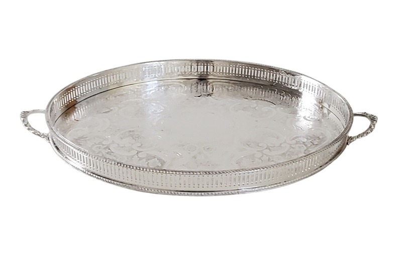 Oval Gallery Tray 20.5" x 12.5" x 1.5"h English Silver Plate c.1950. SKU #: ANT2205.