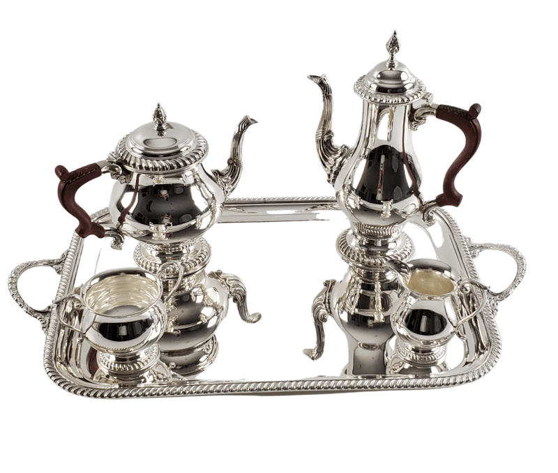 4 Piece Gadroon English Tea & Coffee Set with Tray c.1900. SKU #: A1035.