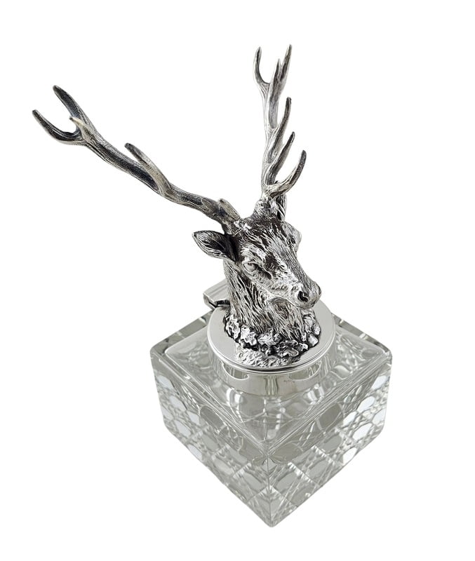 Stag Ink Stand English Silver Plate/Glass. SKU #: ANT2927.