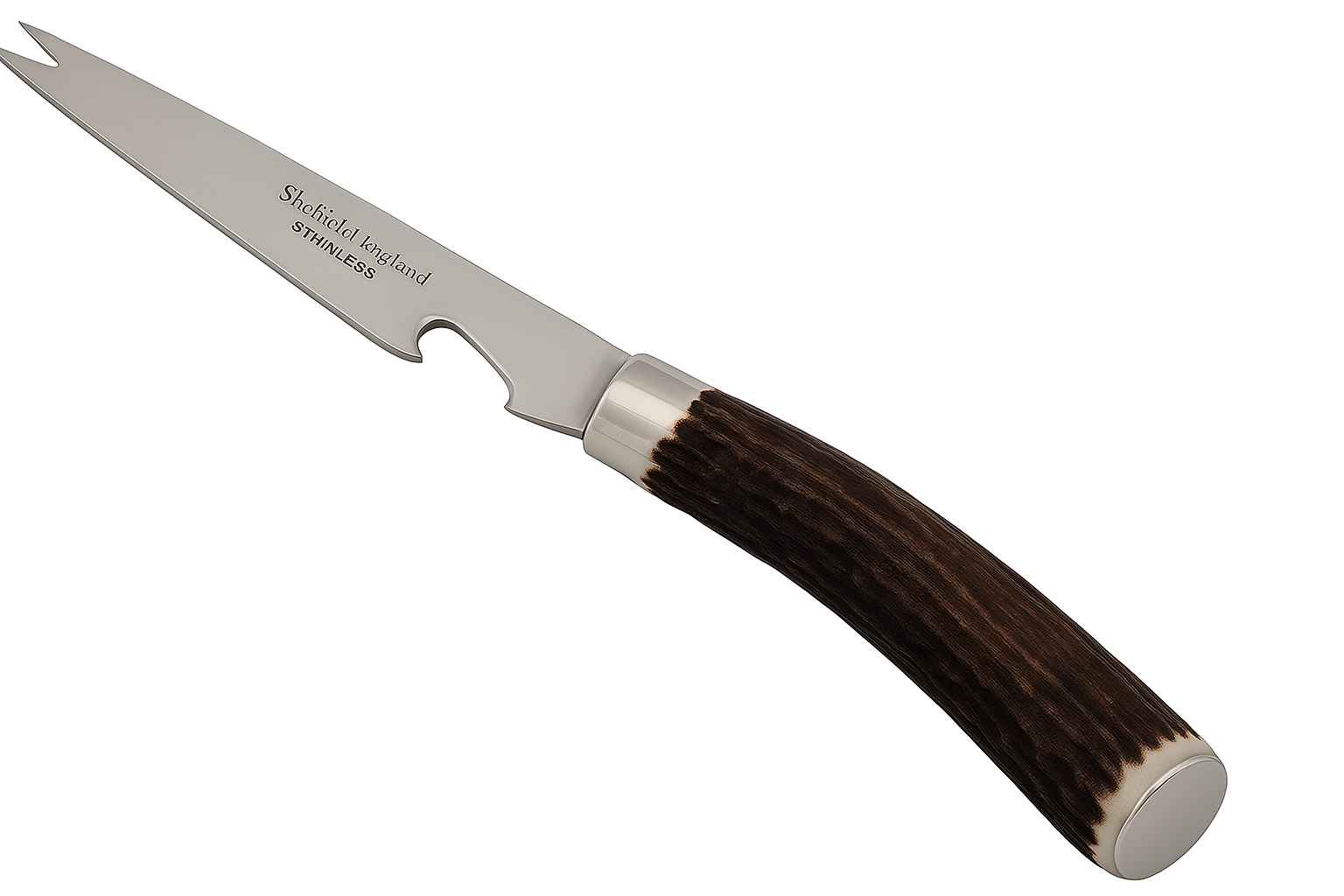 Horn Handle Naturally Shed 8.5" Bar Knife & Bottle Opener Stainless Blade. SKU #: C378.