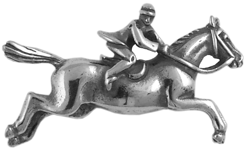 Brooch Jockey on Race Horse Sterling Silver. SKU #: B437.