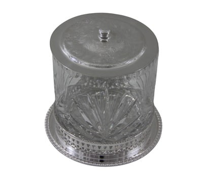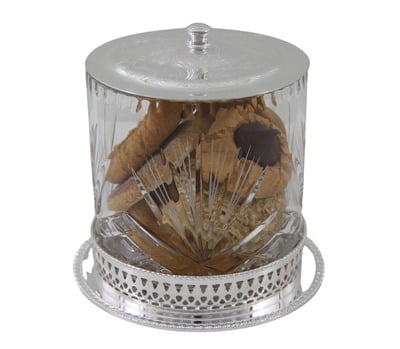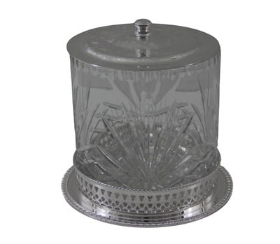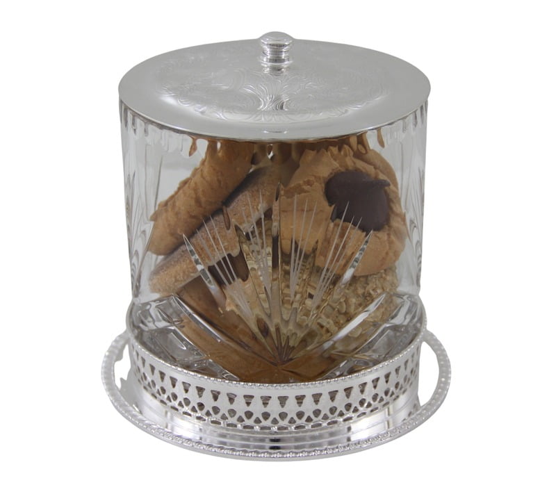 Leaf Design Cookie Jar Crystal/English Silver Plate. SKU #: C3548.