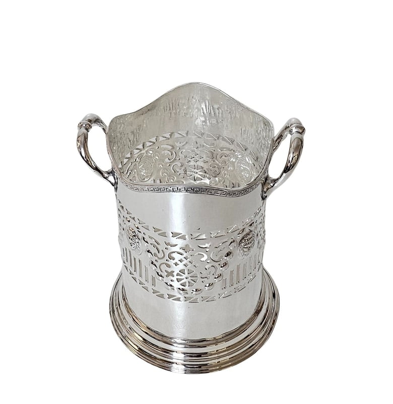 - Description: This exquisite silver-plated syphon stand combines embossed and pierced elements, creating a harmonious blend of texture and elegance.