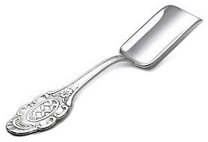 This elegant scoop is crafted from silver plate and features intricate designs on its handle. It is designed for serving coffee, tea, or sugar, adding a touch of sophistication to your tableware collection.
