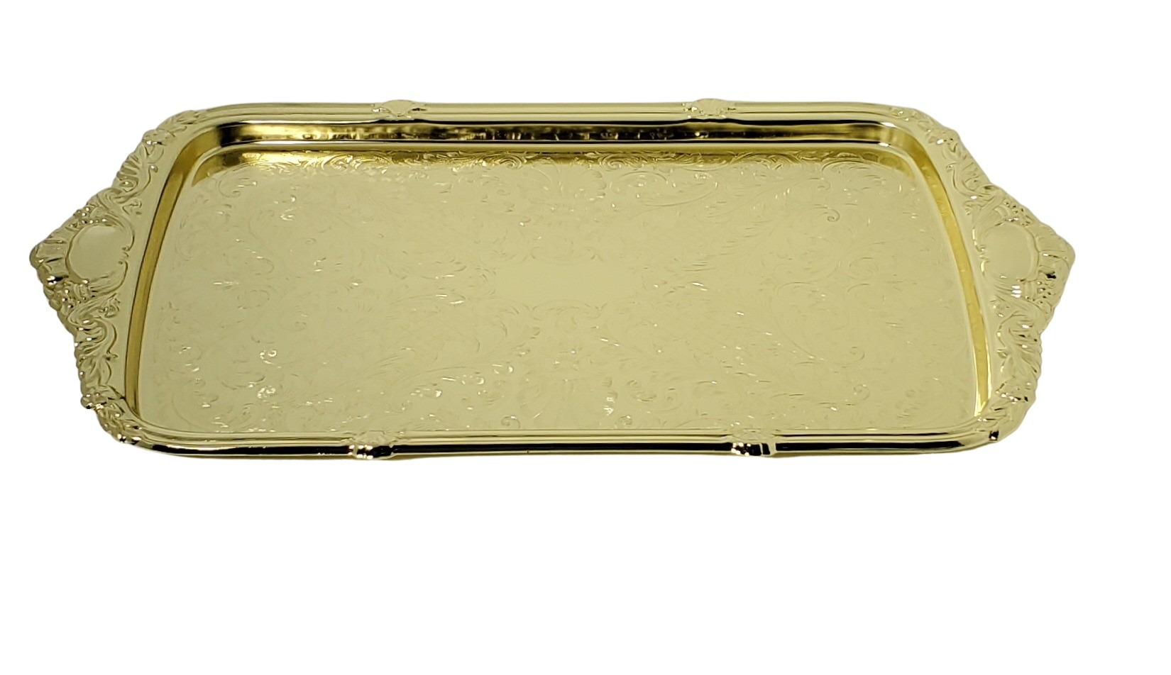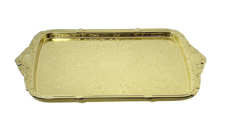 | Oblong Tray Integral Handle 1"h x 11"w x 19 1/4"l English Silver Plate Tarnish Resistant (Gold Finish) |