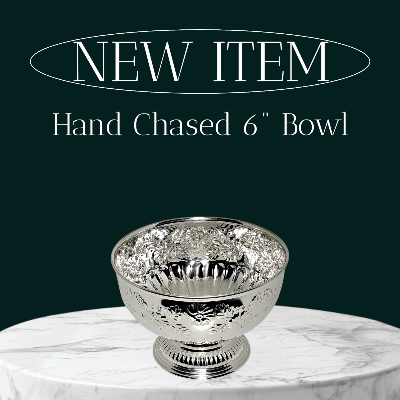 Embossed 6"dia Hand Chased Bowl English Silver Plate (15Available). SKU #: C1826.