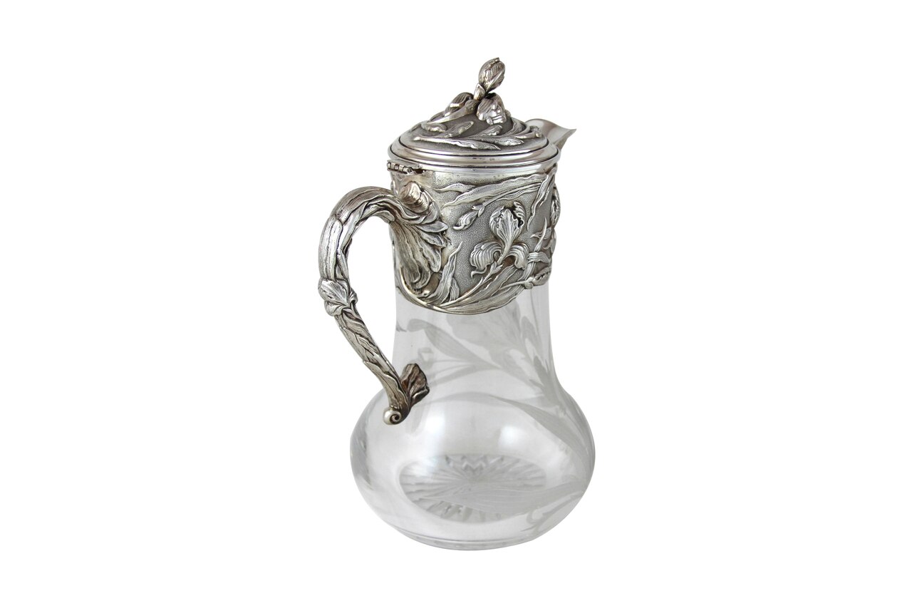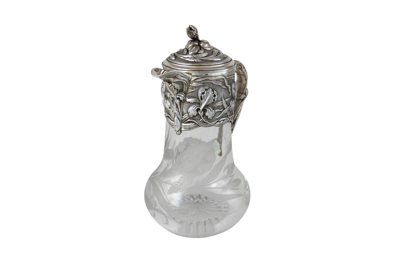 Claret Jug-Nouveau Cut & Etched Silver Plate. SKU #: C337.