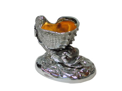 Dolphin Salt with Silver Plate Spoon English Silver Plate. SKU #: C901.