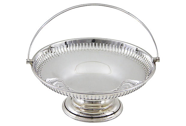 Round Pierced Basket English Silver Plate c.1910. SKU #: A313.