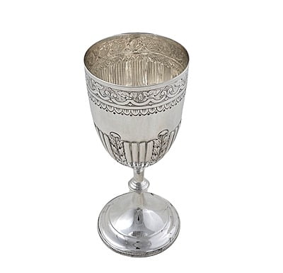 Goblet Embossed With Half Fluting 8.25"h ) English Silver Plate c.1865. SKU #: ANT2883.