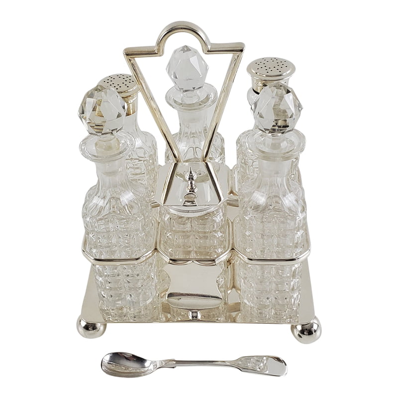 6 Bottle Cruet English Silver Plate c.1885. SKU #: A271.