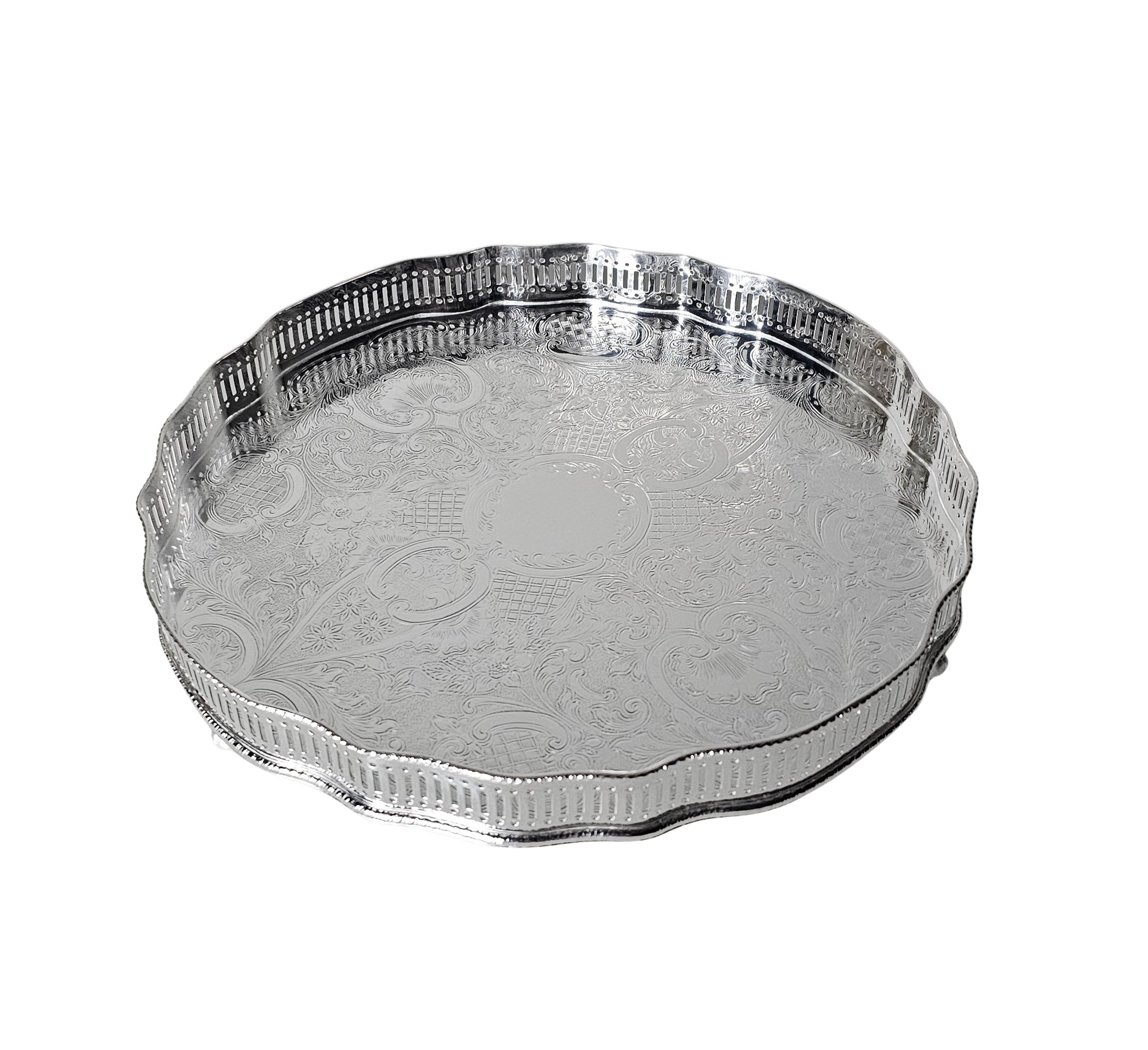 12" Gallery Tray Round Melon Engraved 12" x 2" h English Silver Plate.1 AVAILABLE SKU:ANT4405