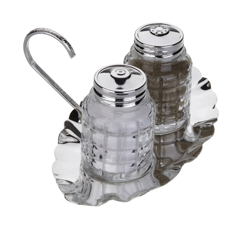 Queen Anne 2 Pce Leaf Cruet 3"h x 5 1/4"w x 6 7/8"l English Silver Plate (Tarnish Resistant). SKU #: 0/5985.