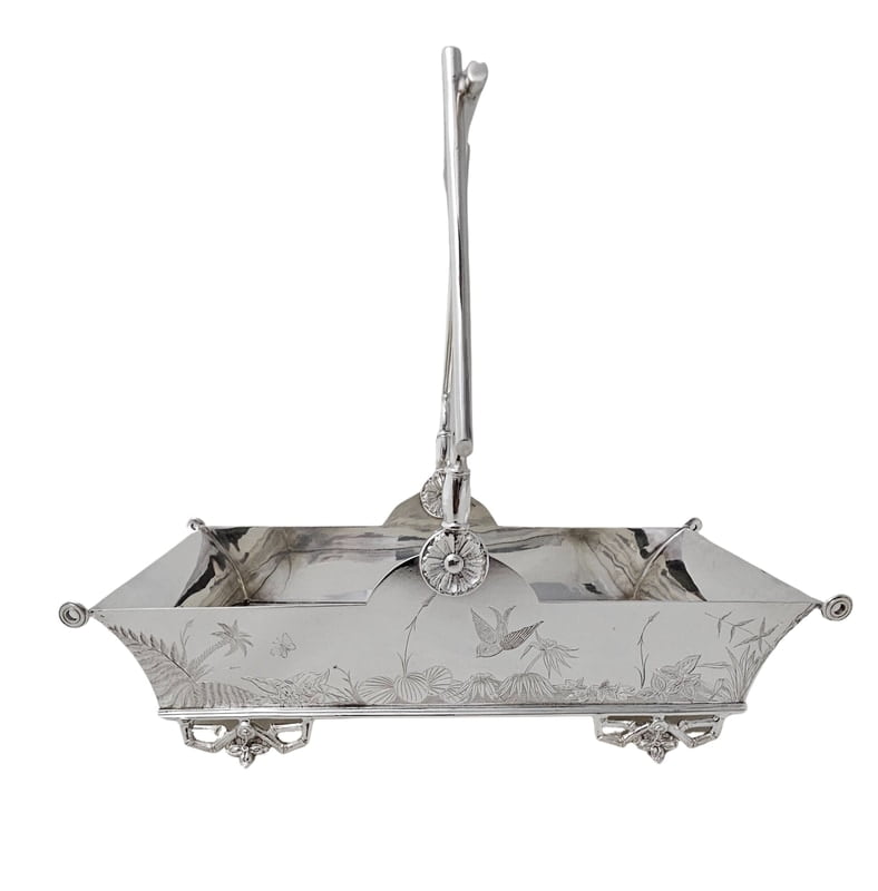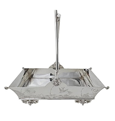 Basket, Rectangular Engraved English Silver Plate c.1875.