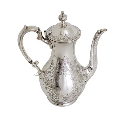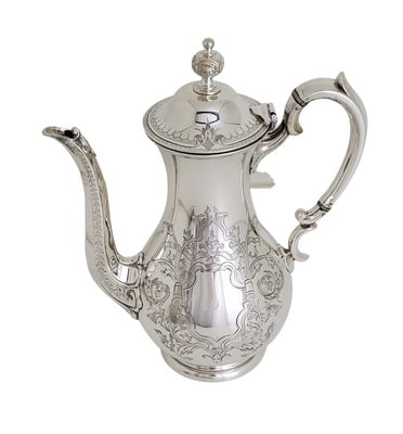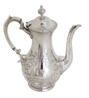 Coffee Pot Round Engraved English Silver Plate c.1870