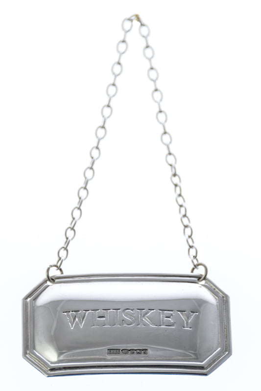WHISKEY Cut Corner Hallmarked Silver Decanter Label..