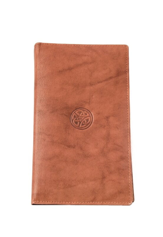 Leather Card Portfolio, Celtic Motif Holds 57 Cards 4" x 8". SKU #: KM803CHC.