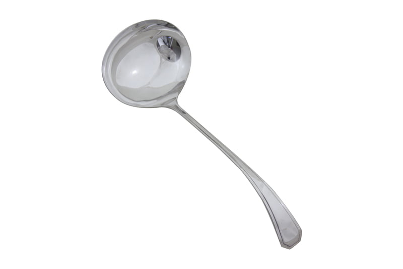 Grecian Pattern, 11.75" Oval Ladle English Silver Plate. SKU #: KM9425.
