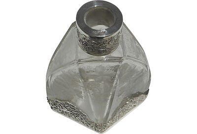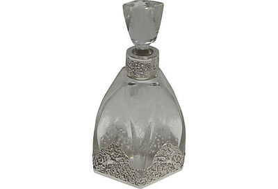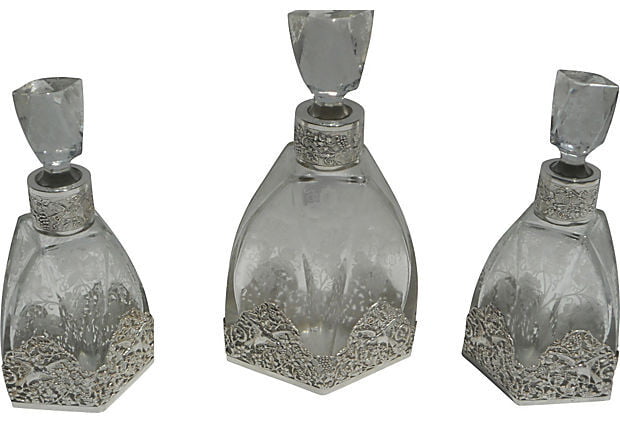 Set/3 Sterling & Etched Glass Decanters, c.1890. SKU #: A5159.