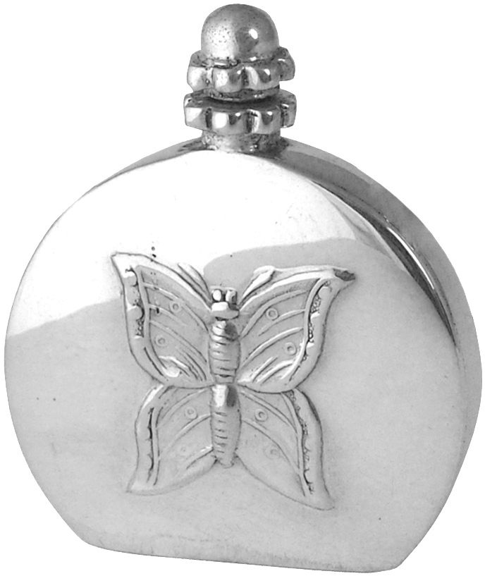 PERFUME BOTTLE MINI WITH BUTTERFLY ENGLISH STERLING SILVER 1.75"H X 1.25W. SKU #: GT432.