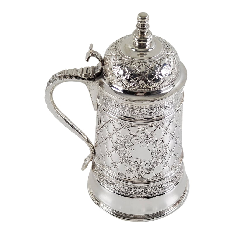 Elaborate Lidded Tankard English Silver Plate c.1960