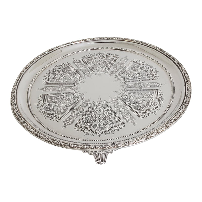Salver 12" Round Engraved English Silver Plate c.1875. SKU #: A447.