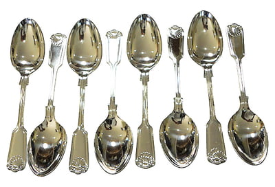 Set/8 Fiddle Thread & Shell Desert Silver Plate Spoons English Silver Plate C.1860. SKU #: A022.