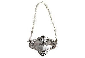 Decanter Label Shell & Scroll Silver Plate Gin. SKU #: C326GIN.