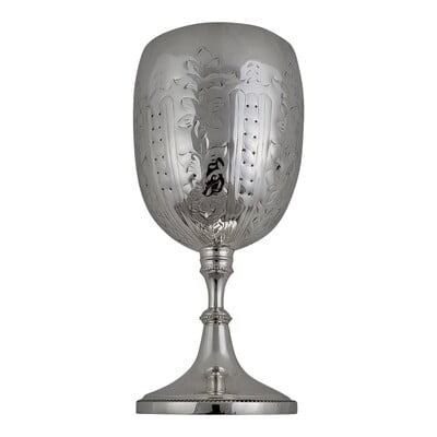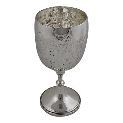 | The Sussex Chalice Elevate your collection with our substantial embossed 10.5" Chalice, fondly known to our customers as The Sussex. This exquisite piece is a faithful reproduction of the original circa 1870 design, which recently sold for $1250.00. Its intricate embossing and timeless elegance make it a sought-after treasure for collectors and enthusiasts alike. A true testament to craftsmanship and history, The Sussex Chalice is more than just a goblet—it's a story waiting to be told. A shimmering addition to any festive table setting, this gorgeous 10.5" goblet is plated in silver and boasts wonderful embossed detail. |