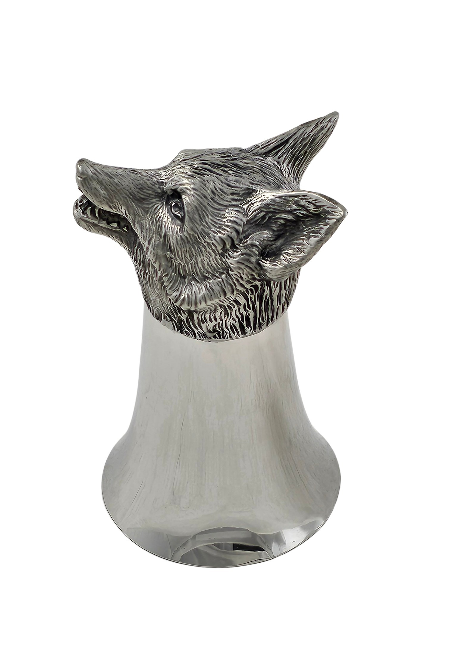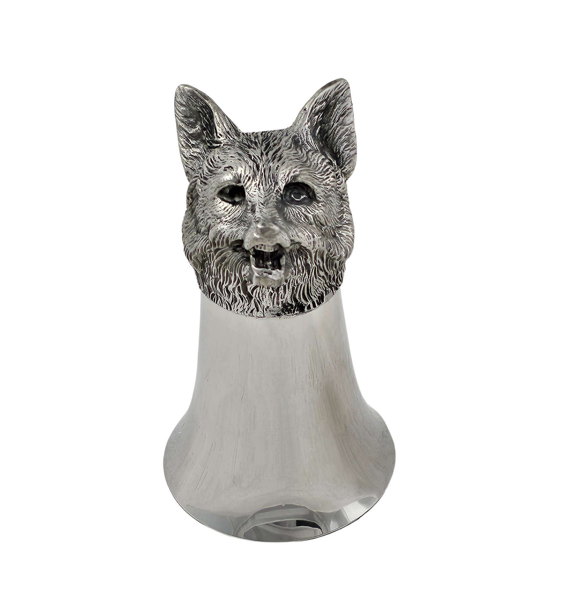 Pewter Stirrup Cup - FOX HEAD 2.85" wide at lip of cup Cup 3"high Total Height 4.5"high