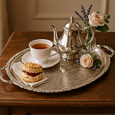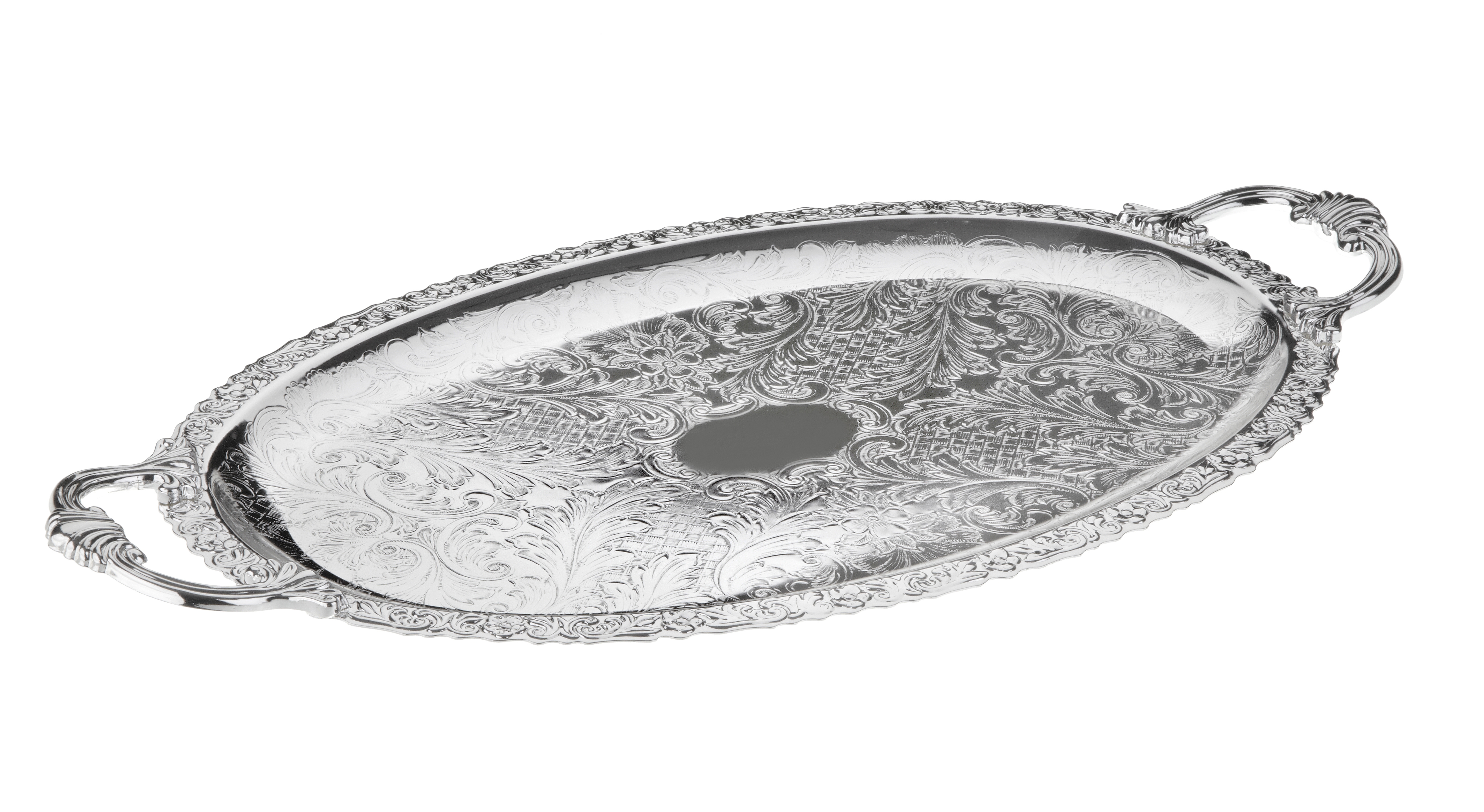 Oval Tray with Handles 1 3/8"h x 10 1/2"w x 18 3/4"l English Silver Plate (Tarnish Resistant) |